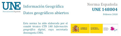 El miércoles de esta semana, 7 de febrero, se ha publicado la nueva norma española UNE 148004:2018 «Información geográfica - Datos geográficos abiertos», elaborada y aprobada por el CTN148 «Información geográfica digital».